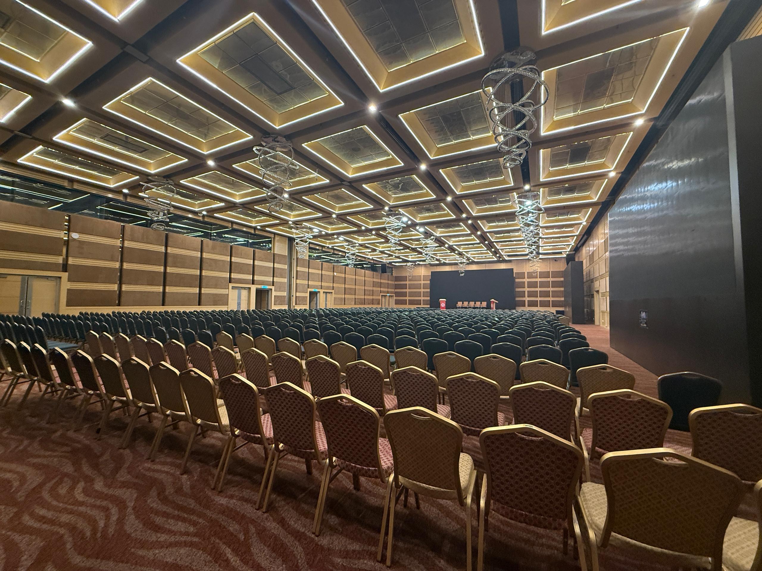 Covering 1,003 m² with a 7.01-metre ceiling, this hall fits up to 1,000 guests. It can be divided into Hall A or B (500 m² each), each equipped with two built-in LED display screens—perfect for seminars, workshops, and mid-sized gatherings.
